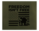 - Patriotic US Flag Print With A Kneeling Soldier And “Freedom Isn’t Free” Lettering Above Runs Across The Chest
